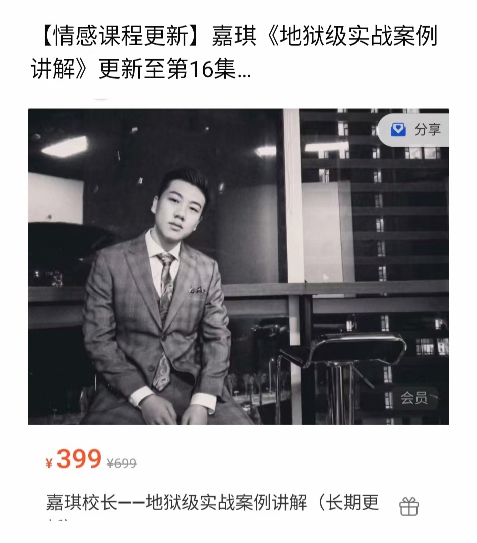 嘉琪《地狱级聊天案例》资源简介: 学过的兄弟们反馈都比较好,更新实战以及街搭案例,一字一句讲解,教你怎么撩,快速升温,撩烧,保姆级教程等,每节课程时间都比较长,内容十足丰富,...