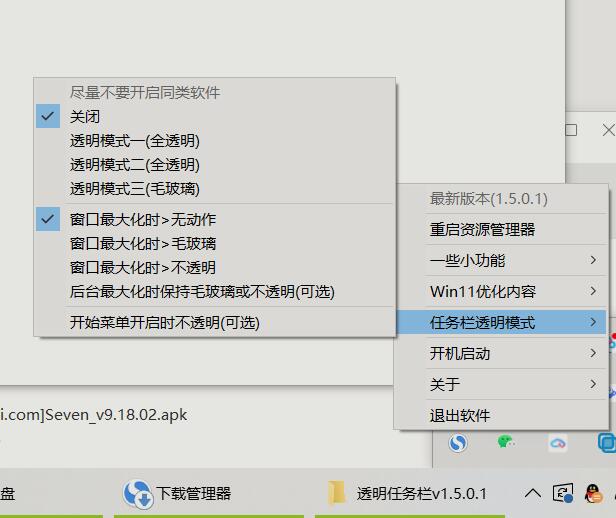 草特码透明任务栏,可以把任务栏切换成透明模式,并支持Windows11的一些设置优化,使你的系统更易于使用。 软件作者@bin666 软件功能 1.支持任务栏全透明,...
