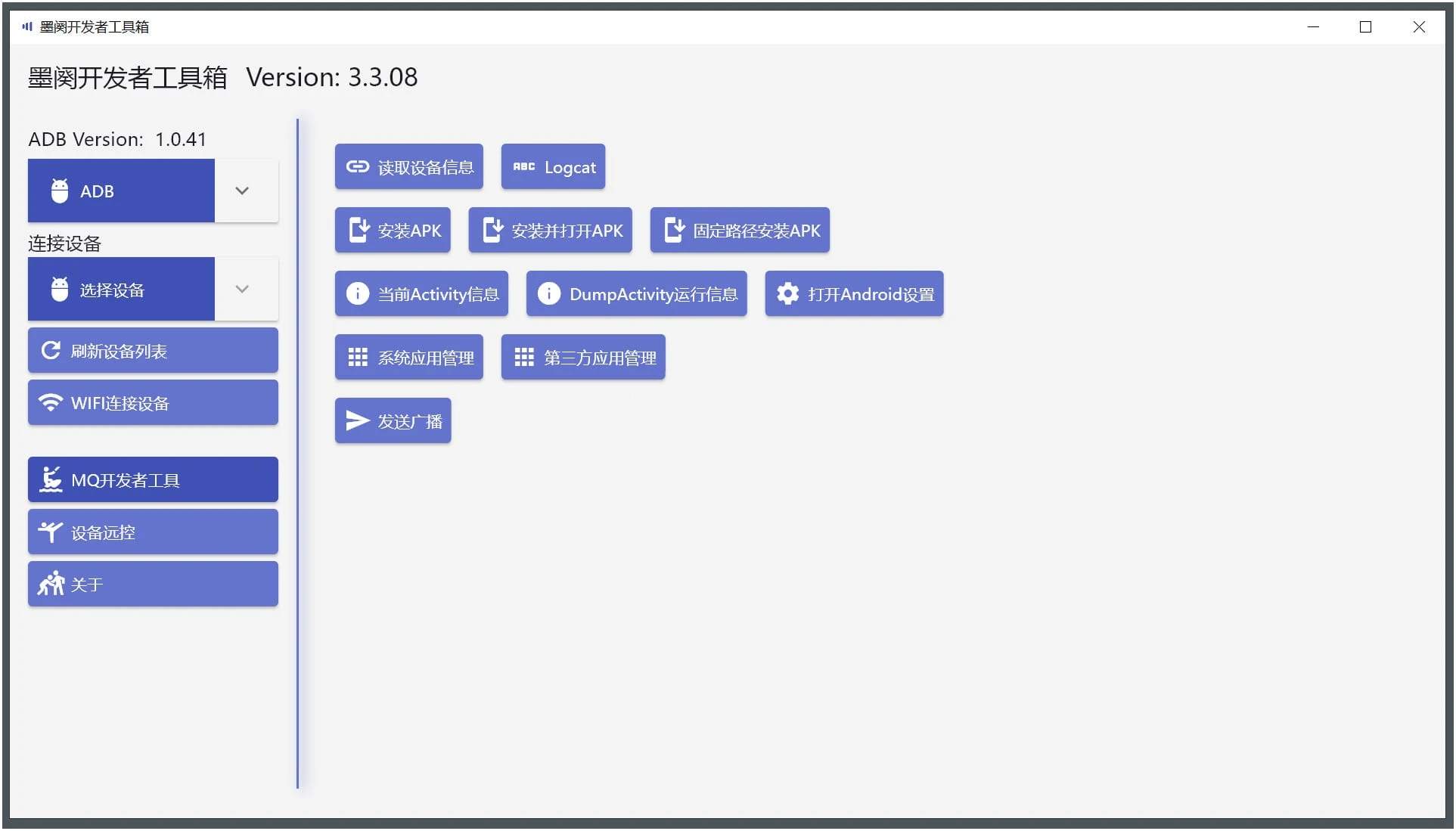 墨闵开发者工具箱 是一款能控制 Android 设备的生产力工具,专为开发者/测试/极客用户设计。它集成上百种操作,旨在通过PC高效操控设备,大幅提升开发和测试效率,无论是企业设备...