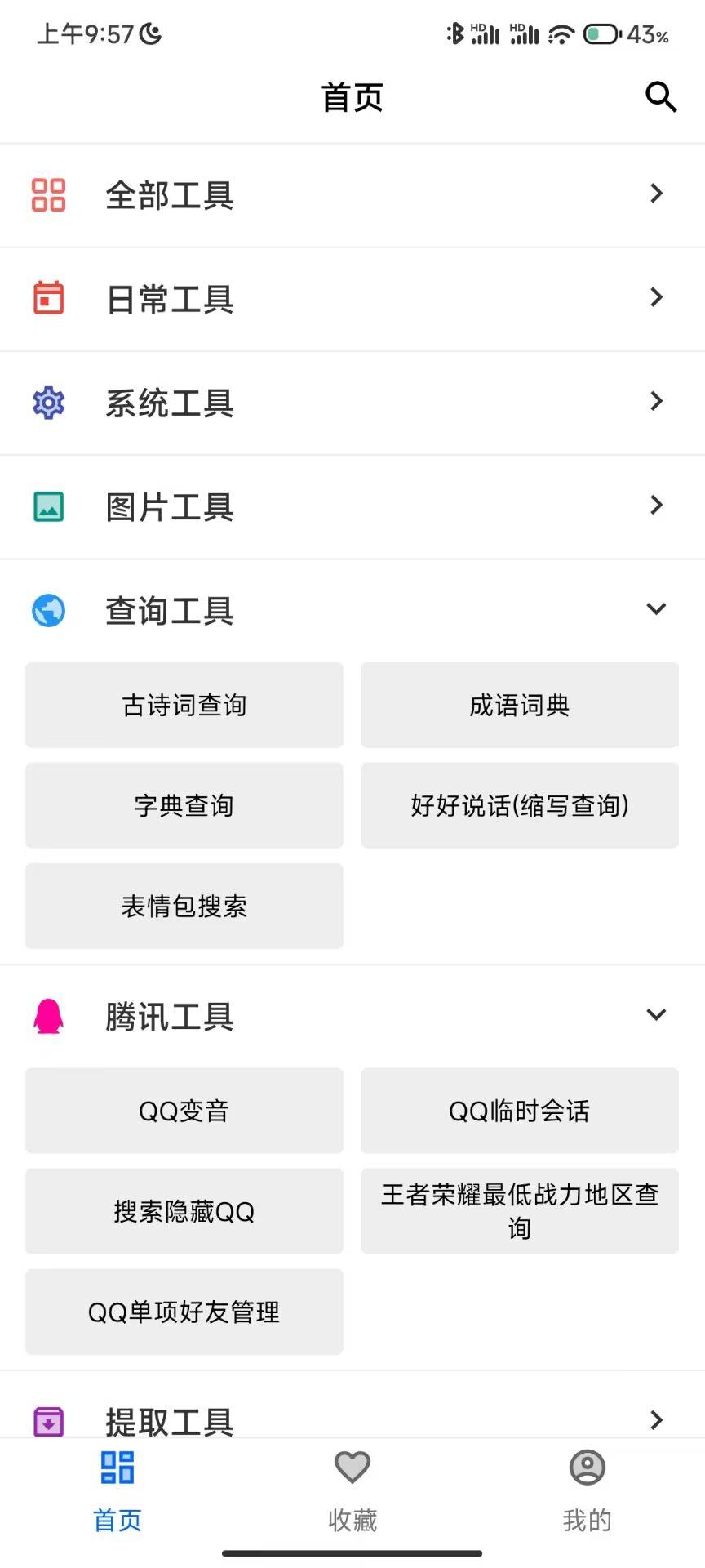 一个安卓版本工具箱合集,集合了一个木函、MikuTools、兔二工具等,界面非常简洁。无广告,免费使用 下载地址: 蓝奏网盘 阿里网盘