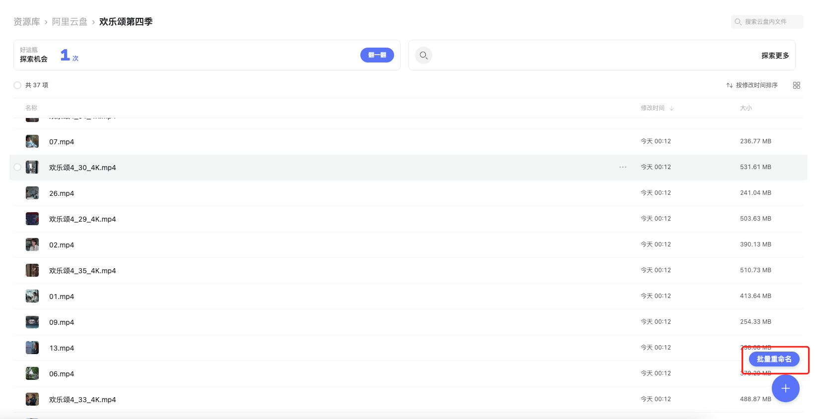 网友开发的一款网页版油猴脚本,可以对阿里云盘文件批量重命名, 如果上传或转存的某些影视剧标题有问题,这个工具是个不错的选择。 下载地址: 脚本网盘 ...