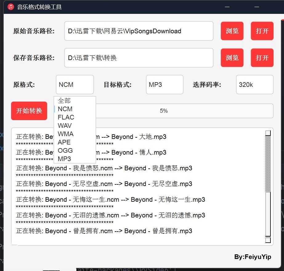 如上图所示,写了一个音乐多格式互转工具,分享给需要的朋友们 下载地址: 蓝奏网盘 夸克网盘 天翼云盘