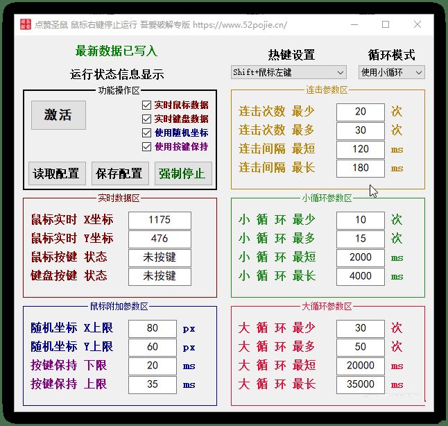 软件用途 最初写这个软件的目的是短视频直播间点赞用的 后来感觉可以加强一下,所以就升级了一下 特点 一切皆随机,可控范围内的随机 V1.1更新内容 整合了键盘鼠...