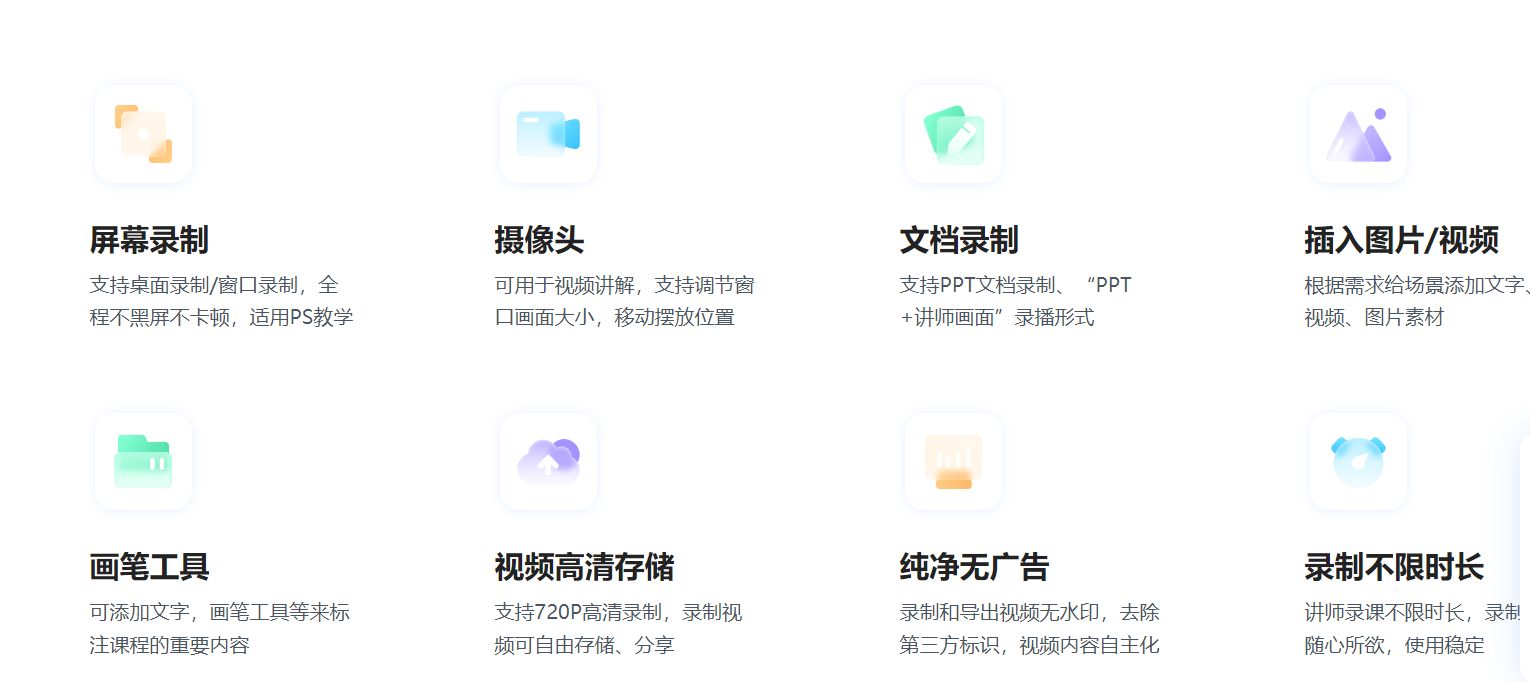 polyv录课助手(详情请戳 官网)是一款免费无广集课件/教程录制、及画笔编辑于一体的多功能录屏软件,支持任意区域+摄像头双录制模式、文字图片素材添加、自由切换录制场景等多种录制方...