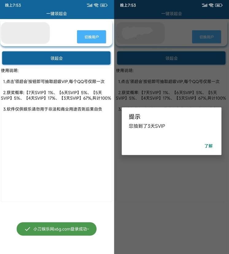 软件介绍 一键领超会APP可一键抽取QQ超级VIP会员,百分之百中奖几率一抽必中,一号一次快来领取吧。 下载地址 蓝奏网盘 ...