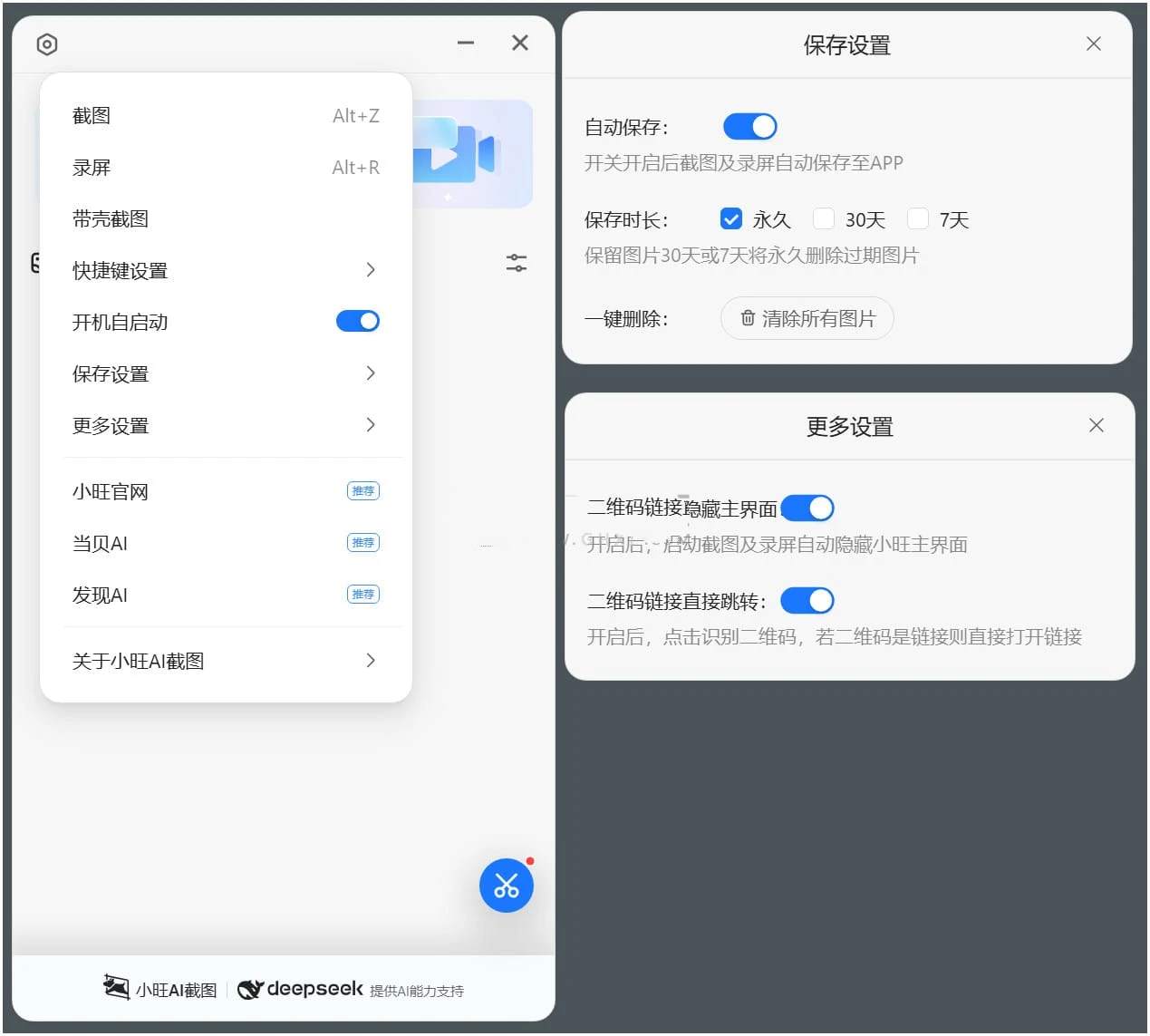 小旺AI截图 是一款截图录屏全能神器,软件功能包含录屏,可以任意录屏,简单好用、无水印输出。懒人一键标注序号,轻松一点,即可标注序号。AI截图翻译,接入DeepSeek大模型,一键...