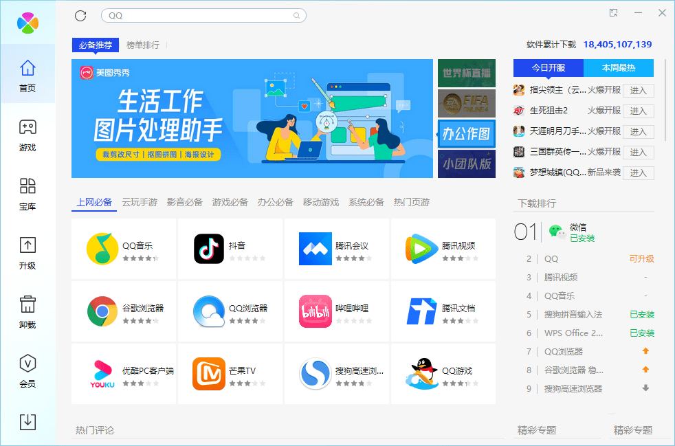 很多人说下载软件直接上官网下载,卸载软件直接用控制面板里的“程序和功能”就好了。但如果需要安装的软件很多,还是需要一款可以下载、升级、卸载软件的工具。纵观全网,针对软件管理的工具大多集成在某安全卫士、某电脑管家里面,国外的软件管理工具不适用于国内用户。此版提取自腾讯电脑管家v15.4.22893.220版本,软件库更新于2022-12-18,无需安装腾讯电脑管家直接就可以使用软件管理。