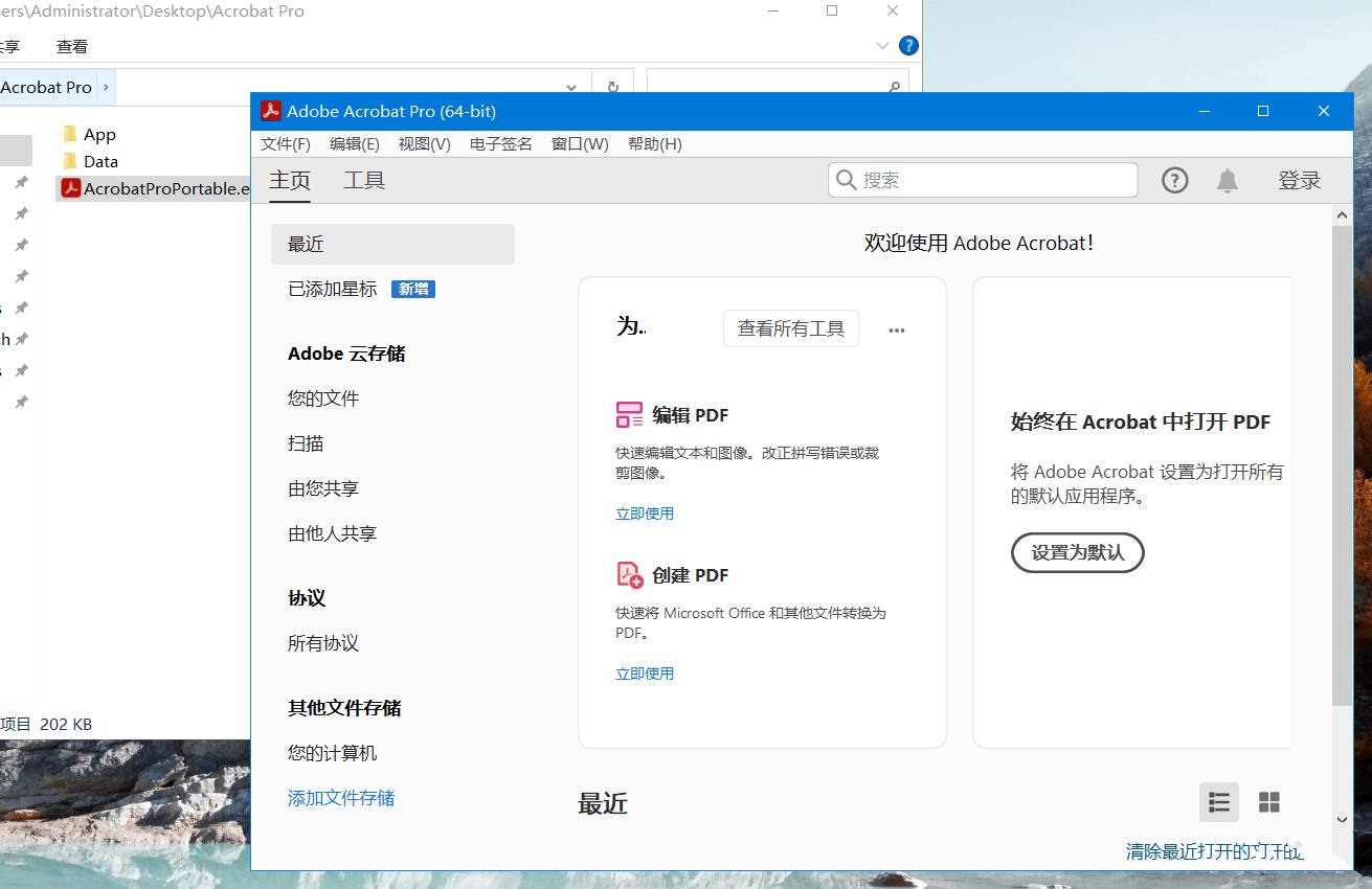 Acrobat DC 2022便携版PDF编辑软件Adobe Acrobat Pro DC 2022中文破解版是Adobe公司继Acrobat XI之后推出的又一款全新PDF文件编辑转换软件.Acrobat Pro DC中文版配有直观触控式界面及强大的新功能,能将任何纸质文件转换为可编辑的文件,用于传输,签署和分享.新工具中心能更简单迅速的访问常使用的工具.