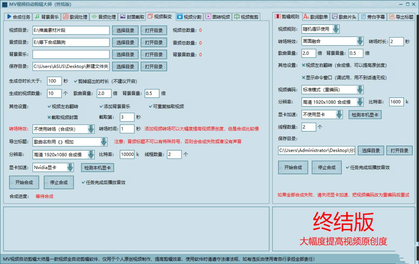 全自动批量视频剪辑软件 ai视频原创工具视频编辑与视频制作功能:视频剪辑:轻松修剪,制作与编辑,一秒剪出精彩短视频