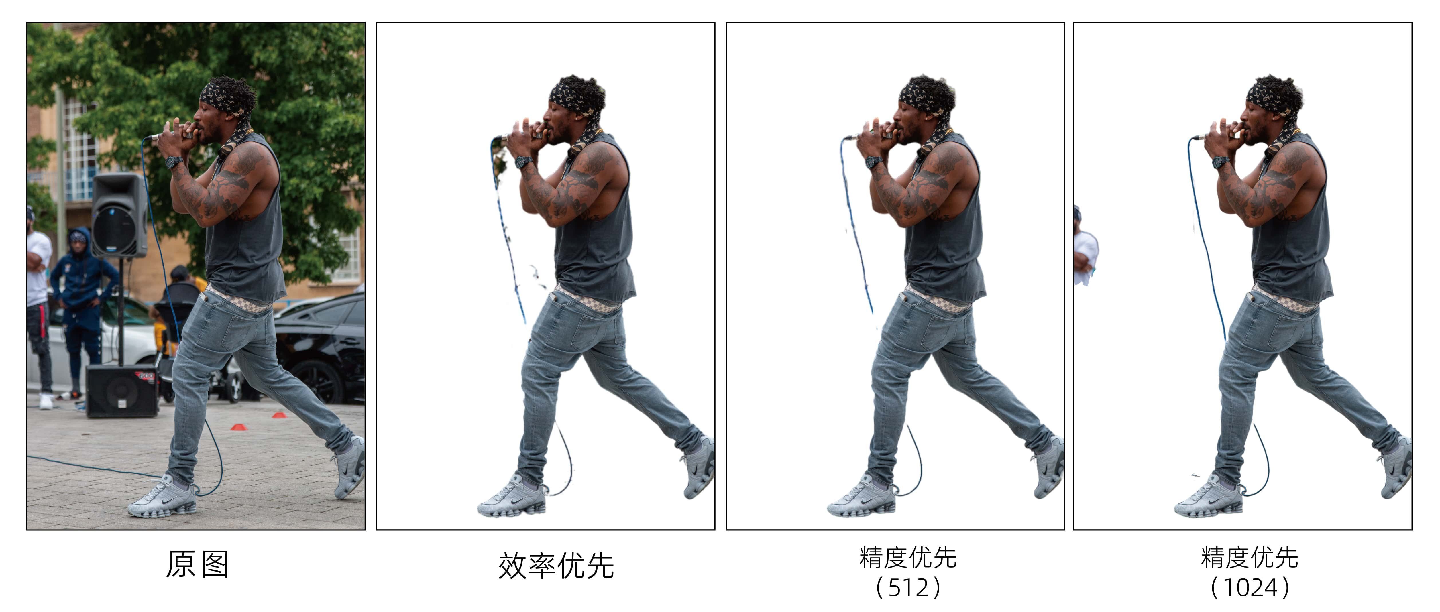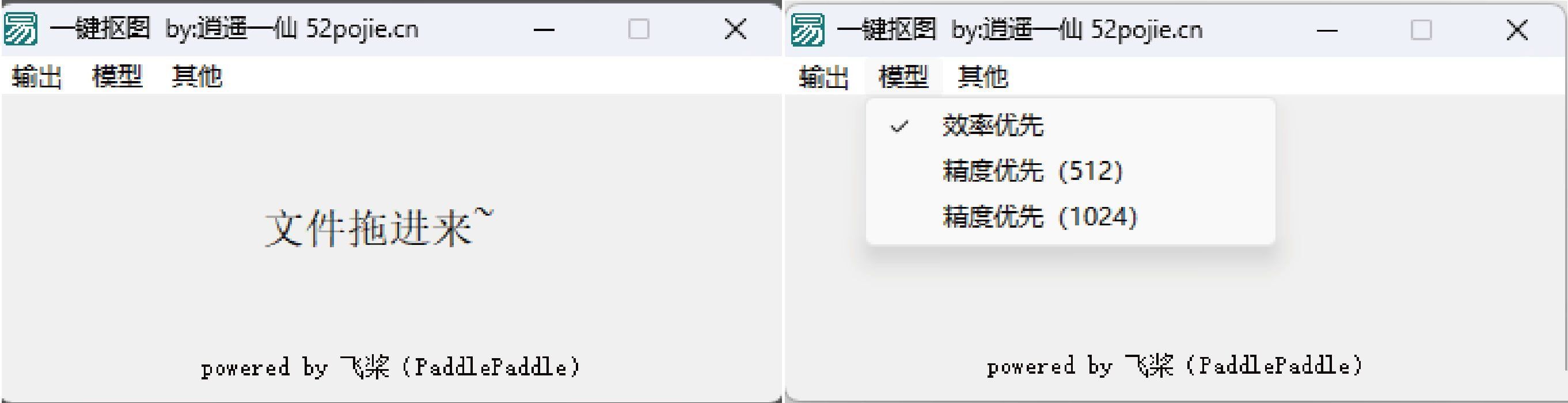 1、模型菜单内,效率优先为PP-MattingV2(默认),精度优先为PP-Matting,可根据具体需求选择。