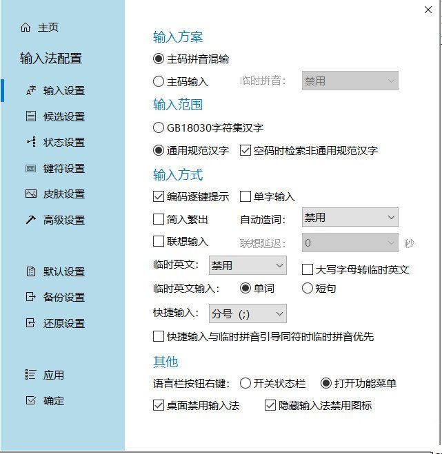 内置了五笔字型86版的极爽词库,同时也支持五笔字型的98版、新世纪版及其他五笔字型的衍生版本。