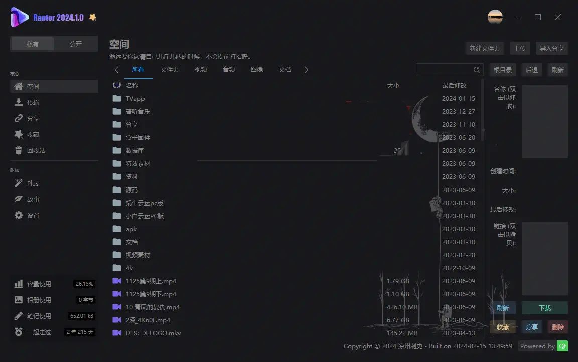 在使用体验上,Raptor与蜗牛和小白羊等第三方云盘使用方法基本一致,如文件管理、上传下载、内容播放和资源分享等常规操作。对于大多数阿里云盘用户而言,线上播放和下载性能是评测一个软件好坏的关键因素。Raptor在这两个方面均有出色表现,并且拥有其他第三方软件所不具备的独特优势。这些优化的功能为用户带来了更加流畅和高效的使用体验。