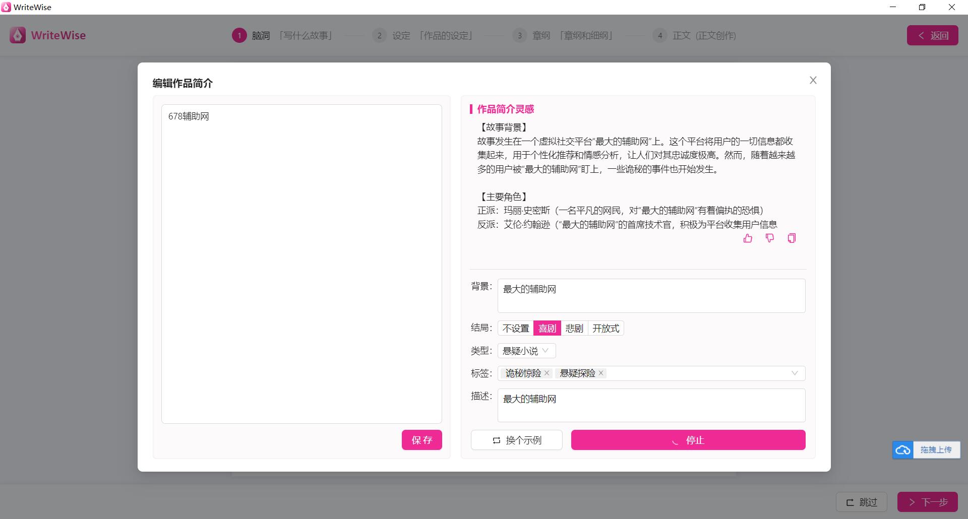WriteWise是喜马拉雅推出的免费网文和小说Ai写作工具