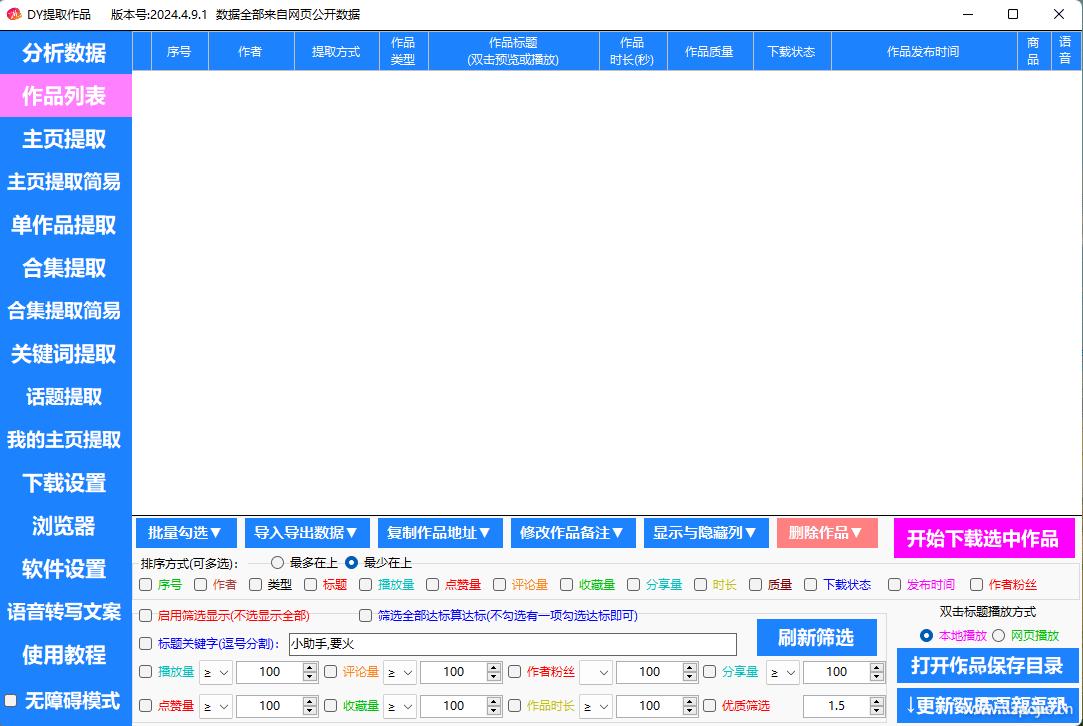 江湖工具箱,一款免费的Windows端抖音多功能工具箱,集合抖音作品提取、抖音监控新作品、热点话题热门作品查看、抖音直播监控与录制、抖音作品去水印、抖音违禁词检测和批量修改视频MD5等等功能,而且软件内置使用教程和操作指导帮助,对于玩抖音的用户是一款非常不错的辅助工具。