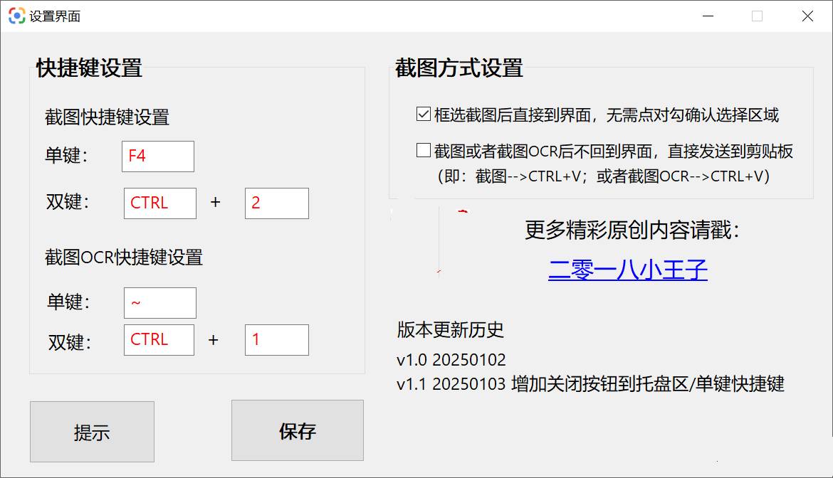 v1.1 20250103 增加关闭按钮到托盘区/单键快捷键