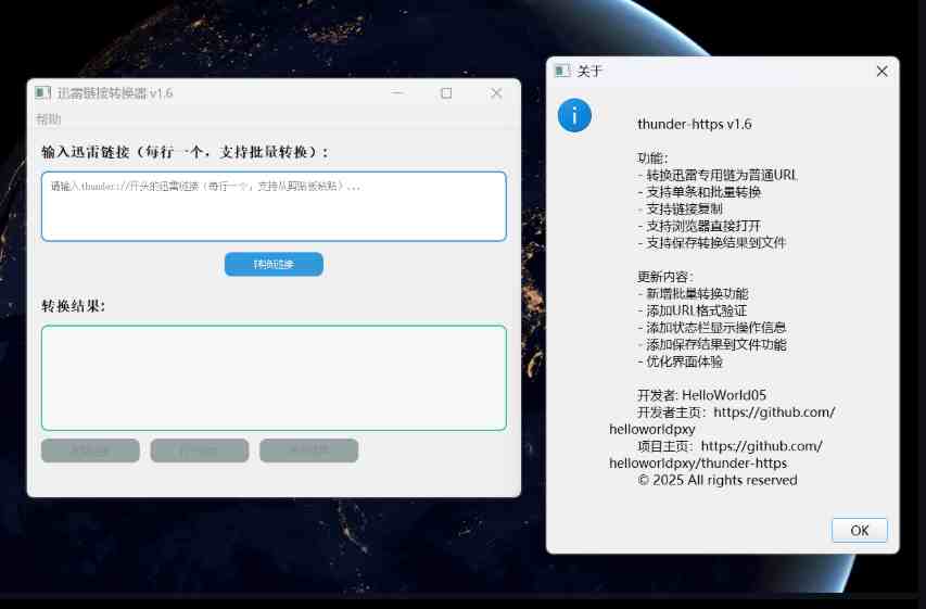 这是一款专业的迅雷专用链转换工具,可将 thunder://开头的加密链接转换为可直接使用的HTTP/HTTPS下载地址