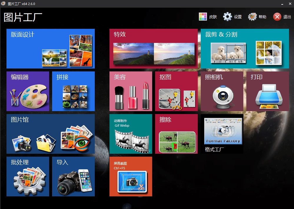 Picosmos是一个覆盖图片全功能的软件,包含特效,浏览,编辑,排版,分割,合并和屏幕录像截图等功能,只需安装它一个就足够应付几乎所有情况 下载地址: ...