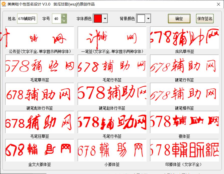 美美哒个性签名设计 V3.0由苦瓜甘甜(wszjf) 原创分享。 程序使用易语言编写,报毒属正常。 本来软件界面有一个“注册字体”按钮的,这样不用安装字体也能正常调用的,但...