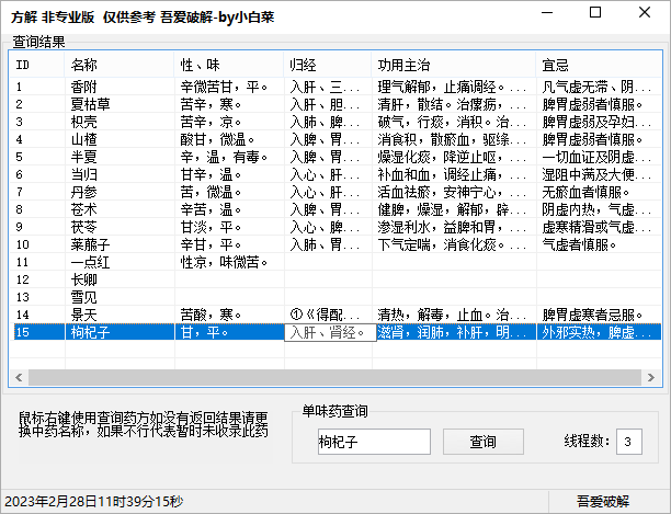 软件介绍 本软件主要是方便普通人了解中药药方里面的组成性味归经功用,一个简单的中药查询网站,整合了一下内容让药方更直观一点,软件提供单味药查询,右键可导入药方文本,也可在...