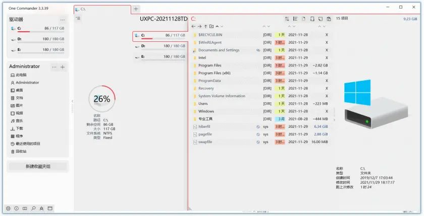 One Commander 3 是一款 windows 下的文件管理器工具,支持多栏、多主题、多套图标、文件预览、色彩标签、彩色新旧文件识别等功能,高自定义,家庭用户可免费使用。在志愿者(如 @Krysl)的努力下,目前 One Commander 3 已内置简体中文。软件特点