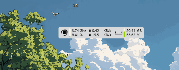 功能有CPU网速内存监测,带一个透明和鼠标穿透。