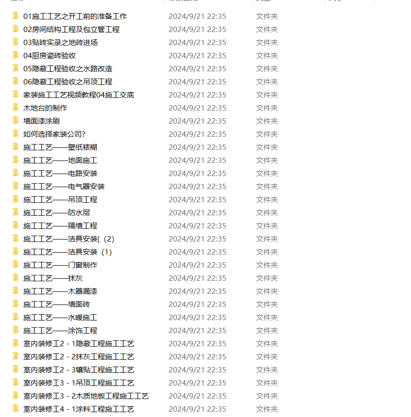 02.家庭进阶工艺视频03.家装全流程工艺视频