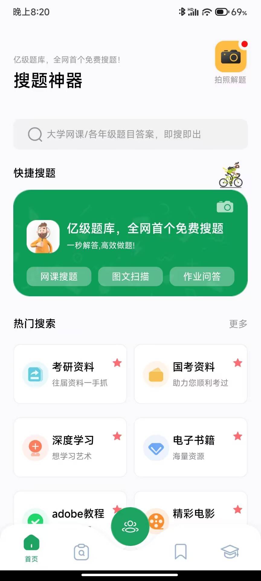 一款全新的搜题软件,搜题神器app里面支持网课搜题,图文扫描,作业问答等,还支持搜索各种考研资料,以及国考资料,每天都会更新最新的题库数据,保证让你满意,快来下载吧!