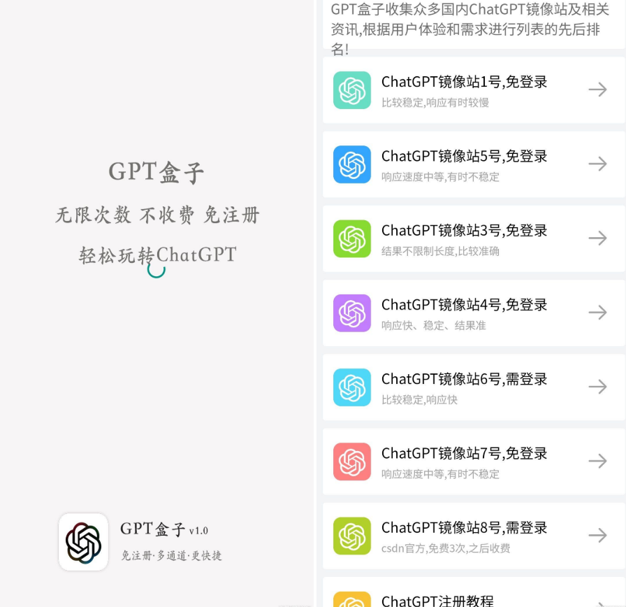 如需无限制体验最新版ChatGPT,请尝试官网注册(软件内附有注册教程)。