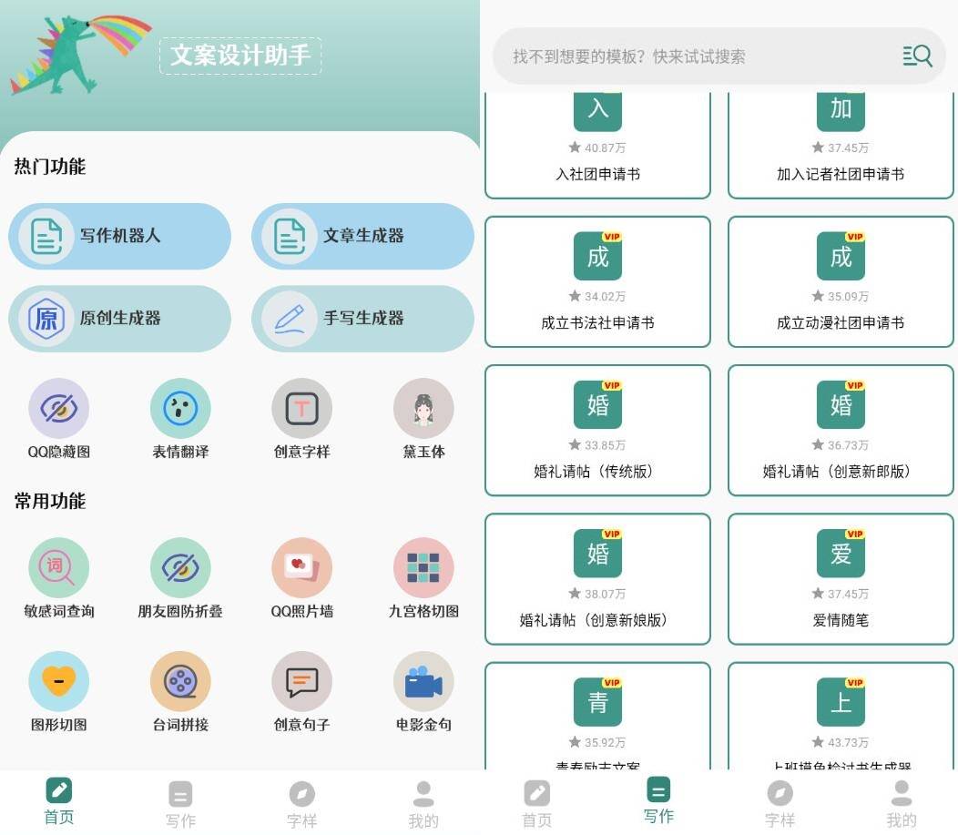 一款文案设计助手APP,你的创意灵感源泉! 提供多种文案类型模板,一键生成各种场景的文案,例如广告文案、产品描述、朋友圈文案等,轻松创作出令人眼前一亮的文案!