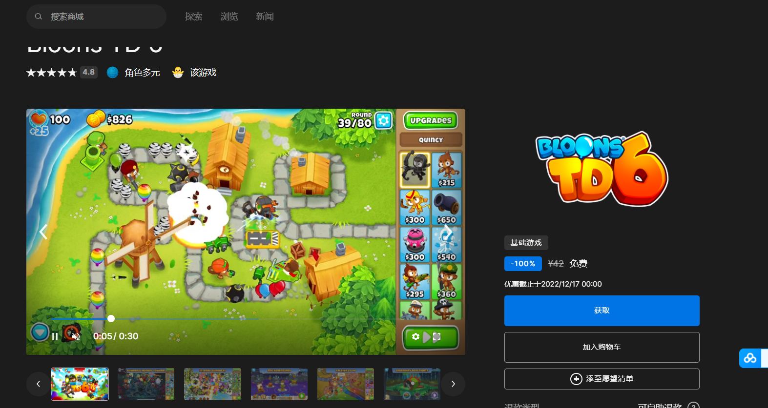 领取地址:https://store.epicgames.com/zh-CN/p/bloons-td-6-bf95a0