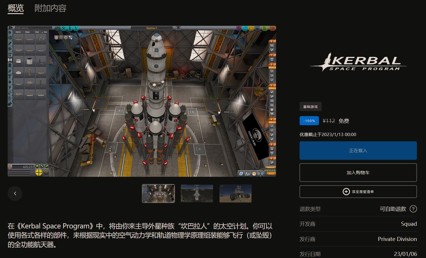 领取地址:https://store.epicgames.com/zh-CN/p/kerbal-space-program