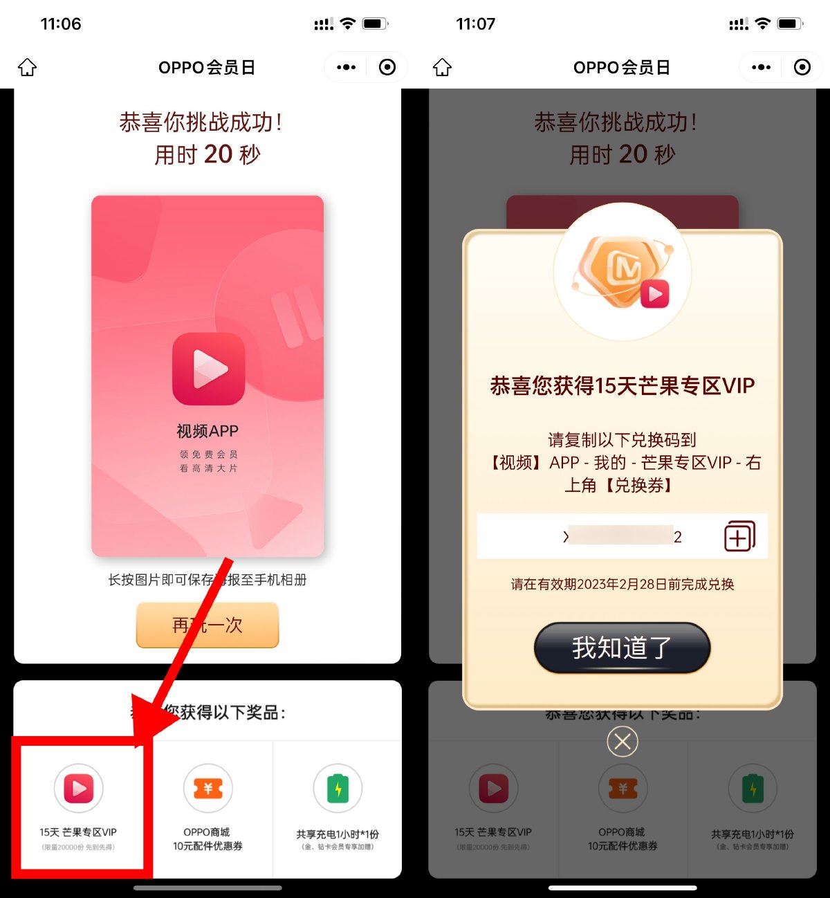 微信打开地址->完成拼图领15天芒果TV会员兑换码->在“视频APP-我的-芒果专区VIP-右上角兑换券”中兑换