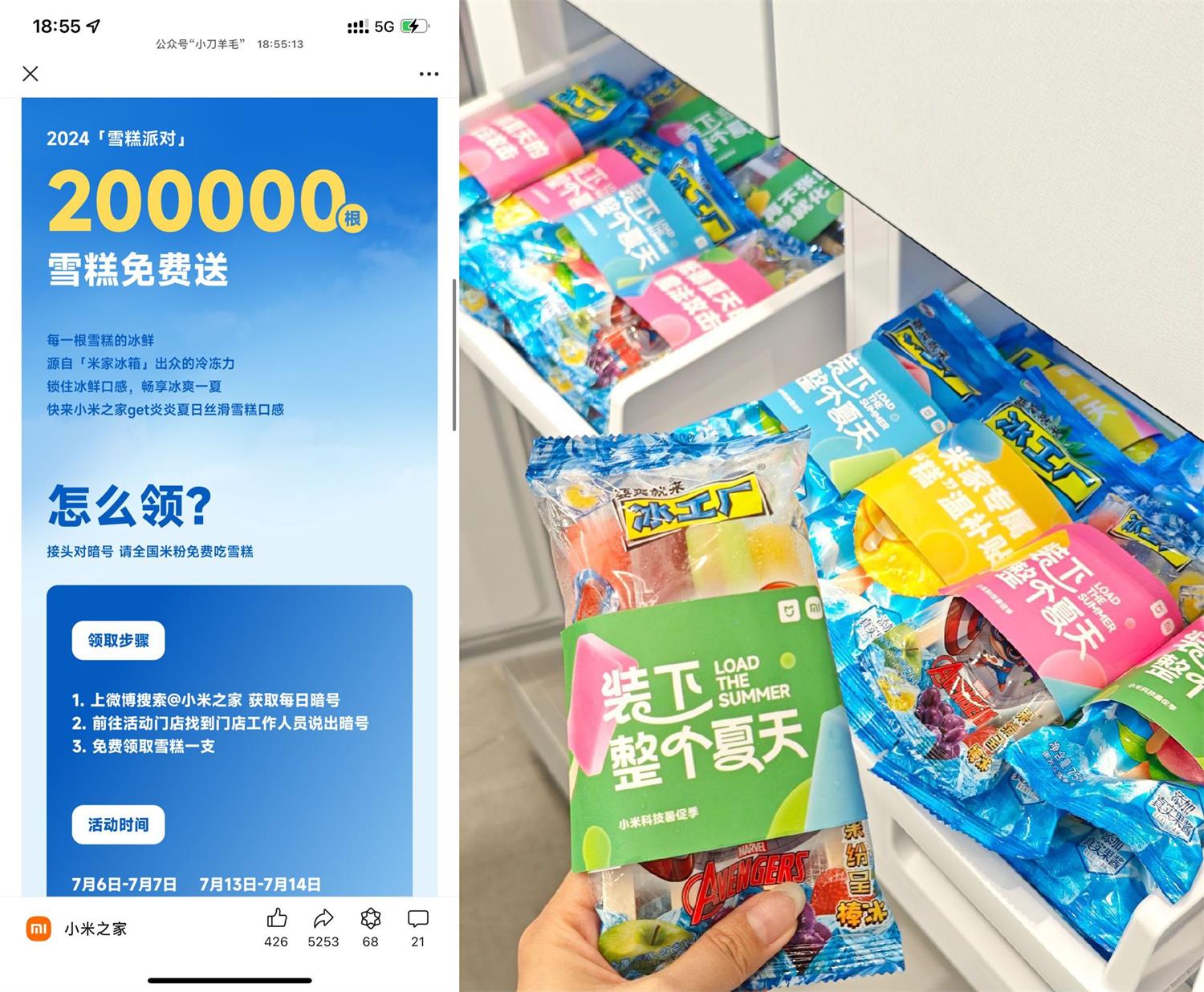 7月13日~14日到店跟工作人员说出暗号,即可免费领雪糕一支,每家店每天限量前25名 活动地址:https://tb3.cn/ANyO6I